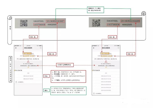 自2019年第一季度起,寶鋼股份青山基地與寶鋼股份寶山基地的彩涂卷背面為同類型二維碼防偽標示。