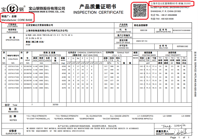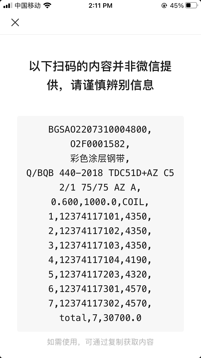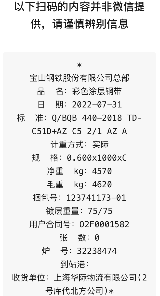 2012年寶鋼彩涂質保書率先應用二維碼技術進行防偽,配合智能手機即可掃碼上網識別真偽,如圖所示: